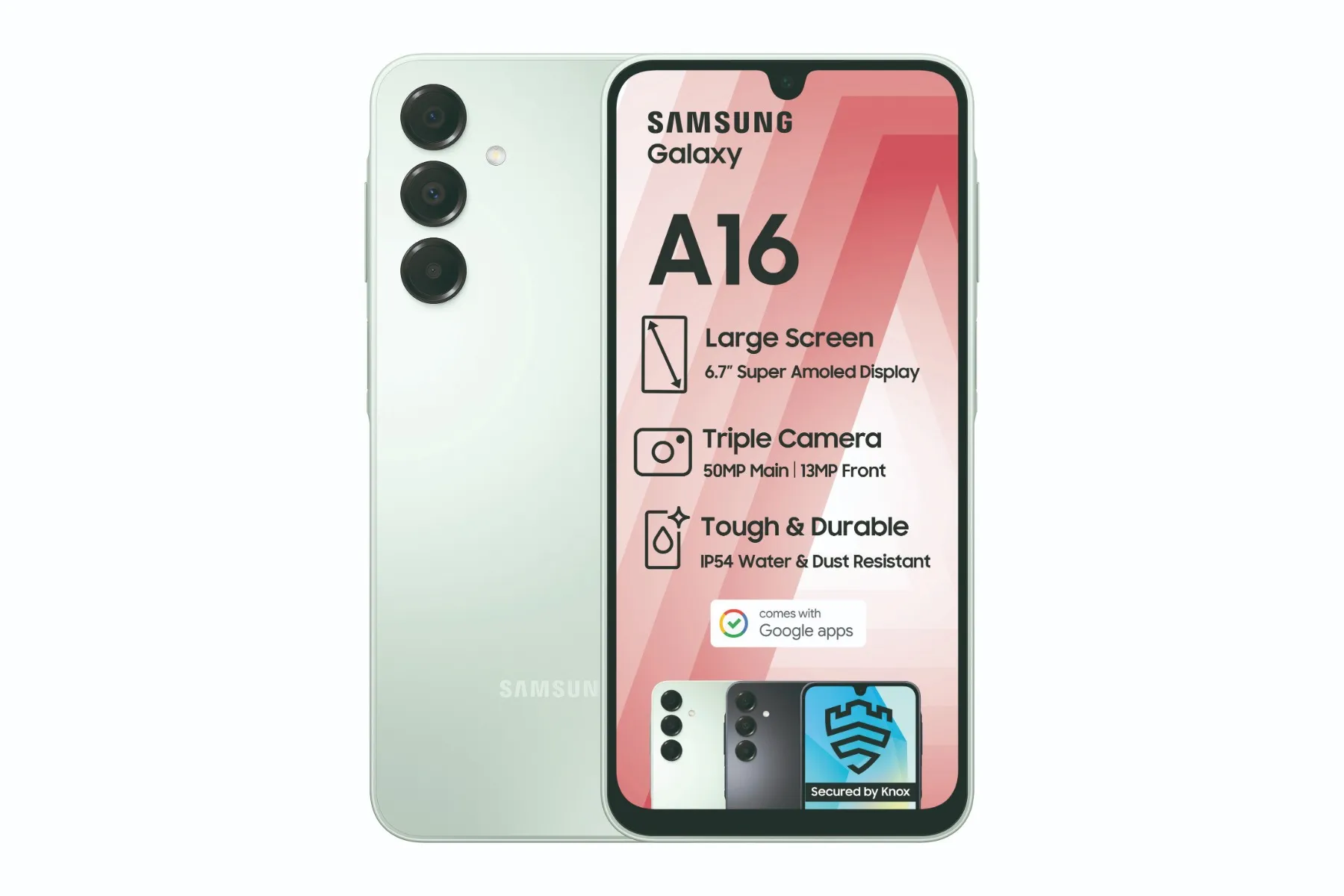 The Samsung Galaxy A16 in Light Green brings a refreshing design and powerful performance to your everyday life. With a stunning 6.7-inch Super AMOLED display, high-resolution cameras, and a reliable long-lasting battery, it’s the ideal all-rounder for entertainment, work, and creativity.